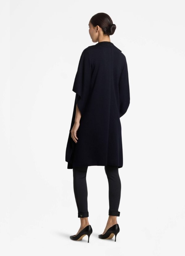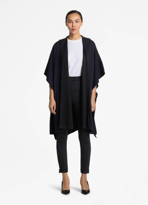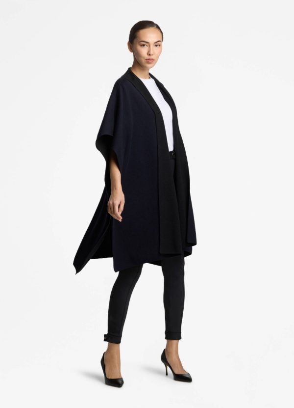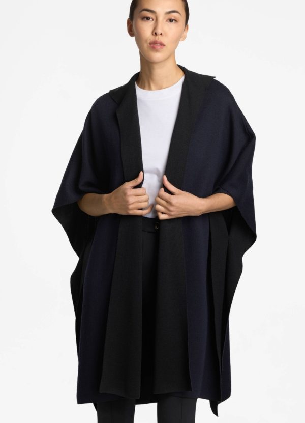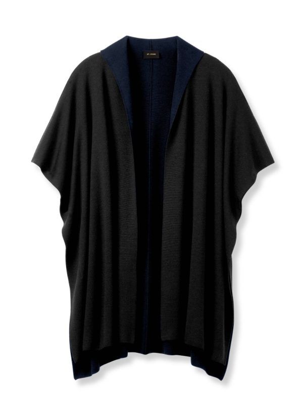 A versatile wrap is a cool weather essential, opt for this double face jacquard knit mandarin collar cape with two-tone knit detail and you’ll always be covered.