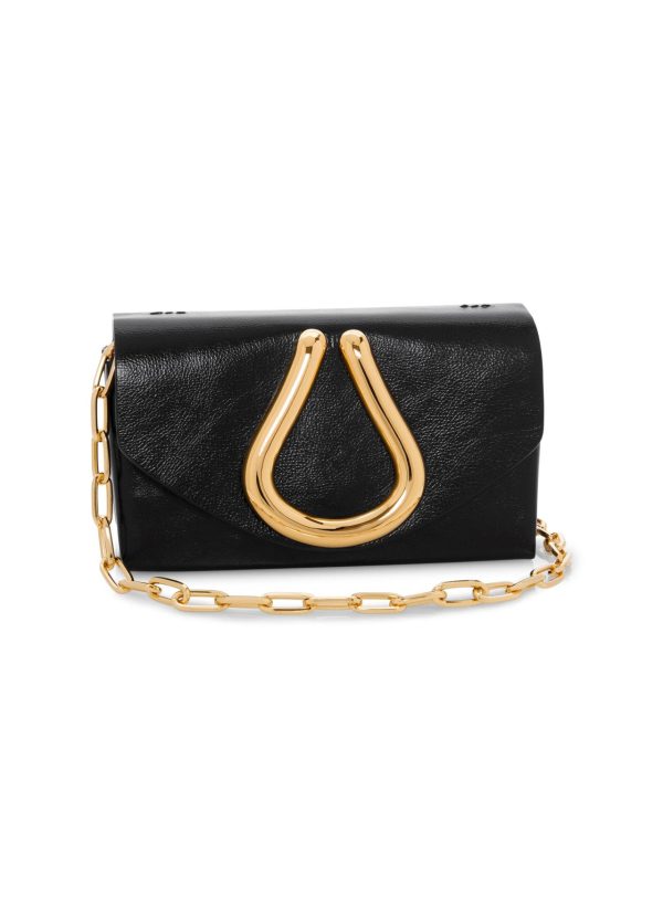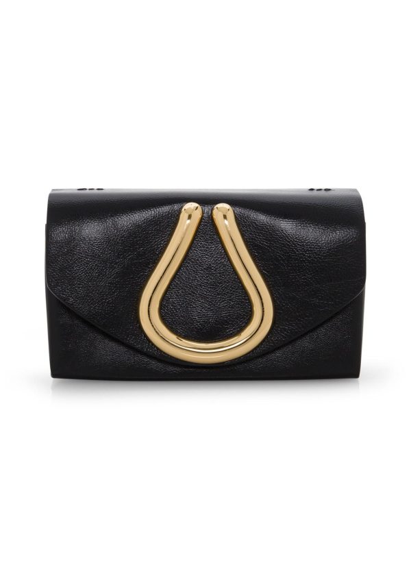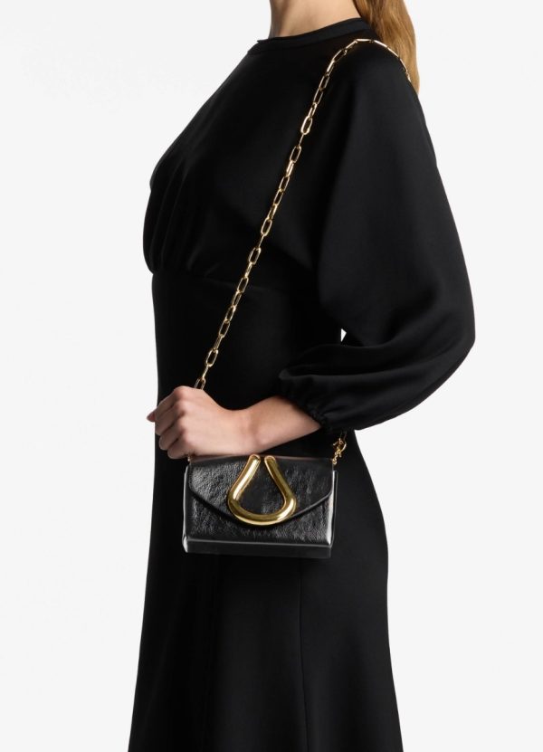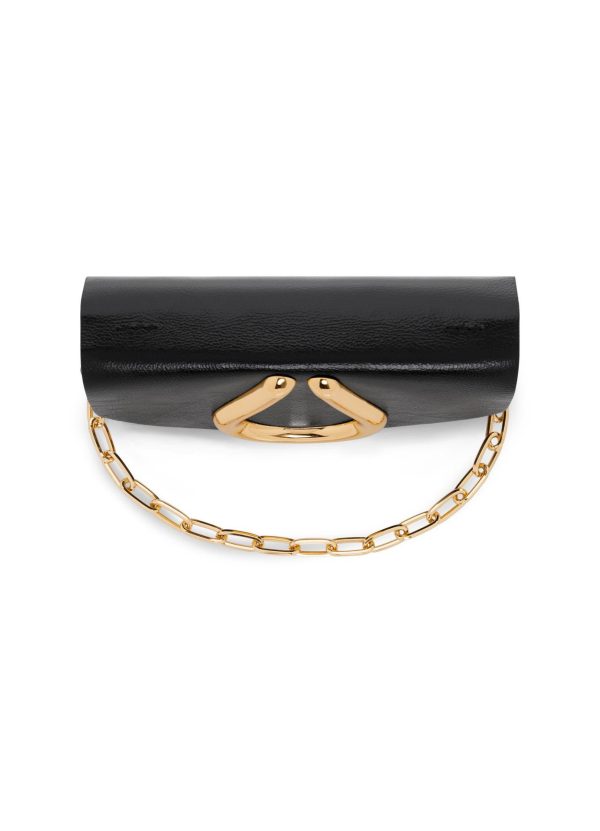 Mini Loop Shiny calf handbag with front flap, metal loop detail and removable chain strap. A timeless combination of gold-tone & black is just as distinguished as it is demure.