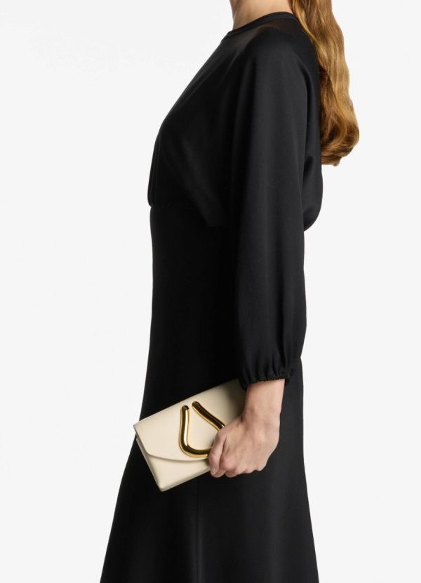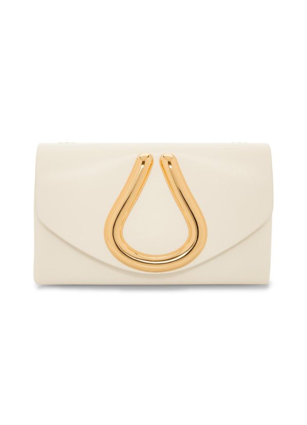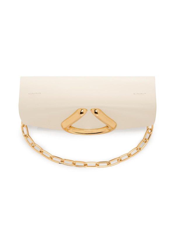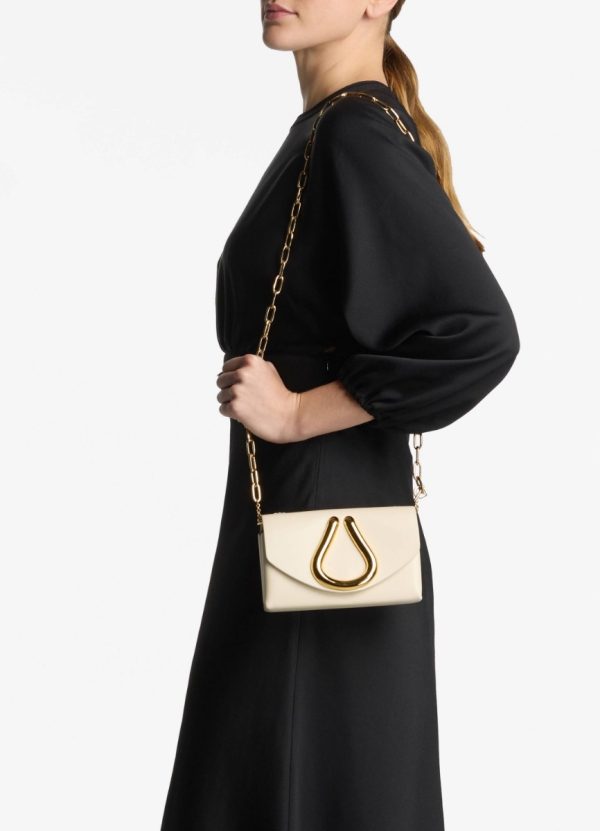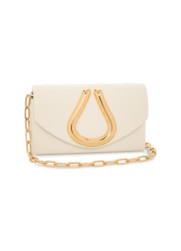 Miniature leather handbag with front flap, metal loop detail and removable chain strap.