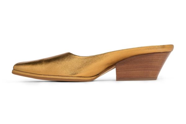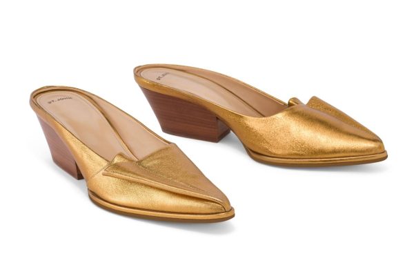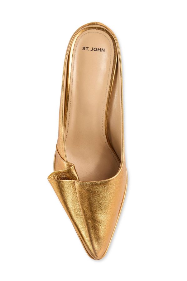 Pleated Leather Mule Gold | Women St. John Handbags & Shoes