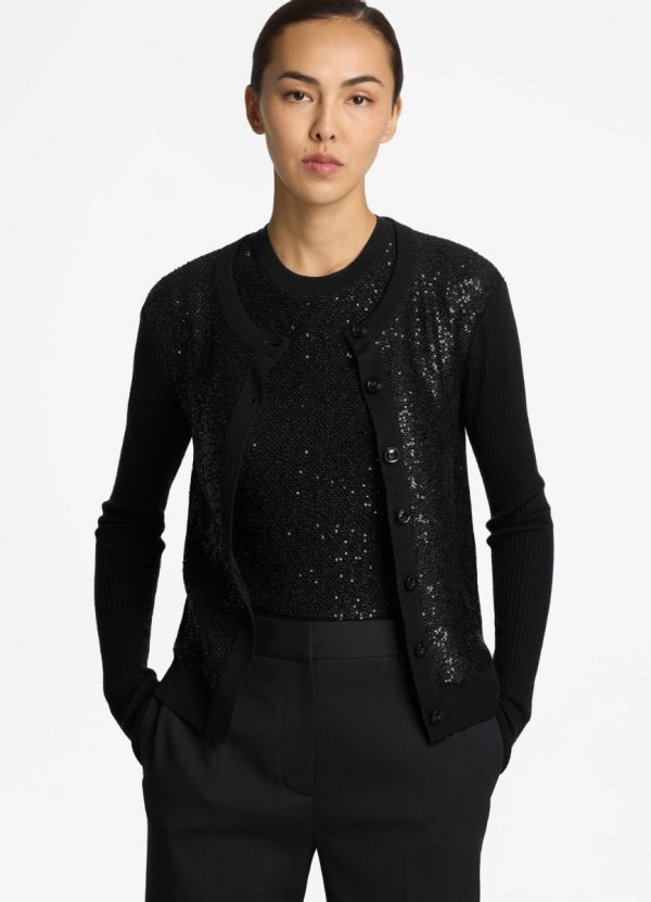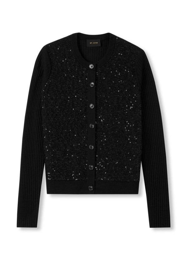 Sequin Knit Cardigan Black | Women St. John Sweaters