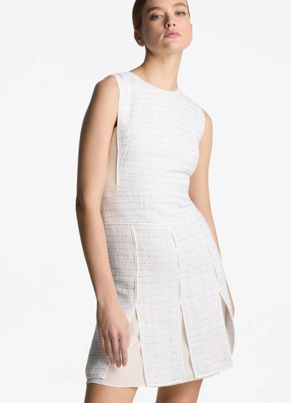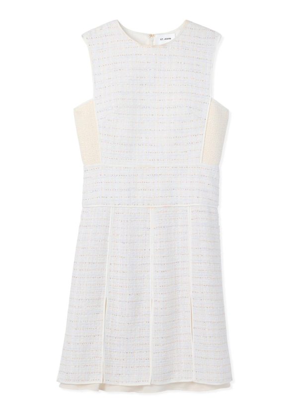 Sequin Tweed Open Weave Dress Ivory Multi | Women St. John Dresses