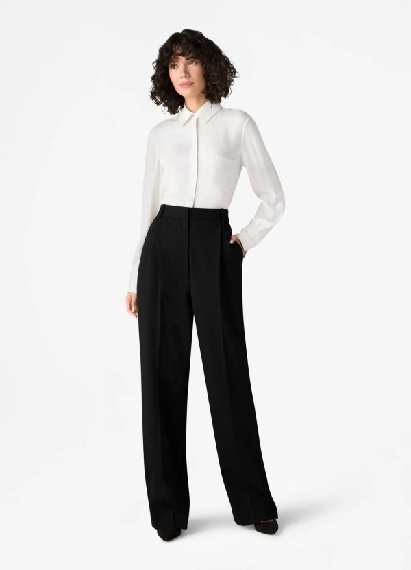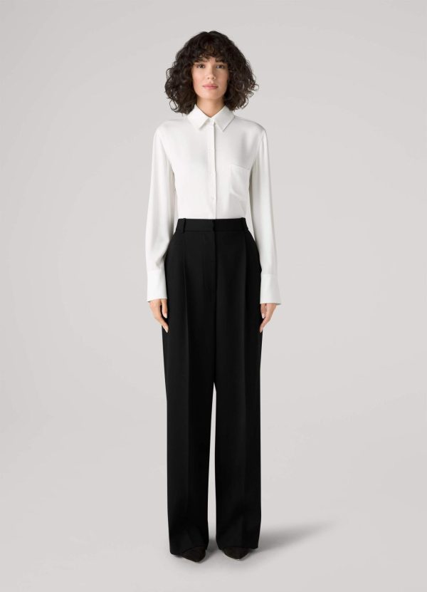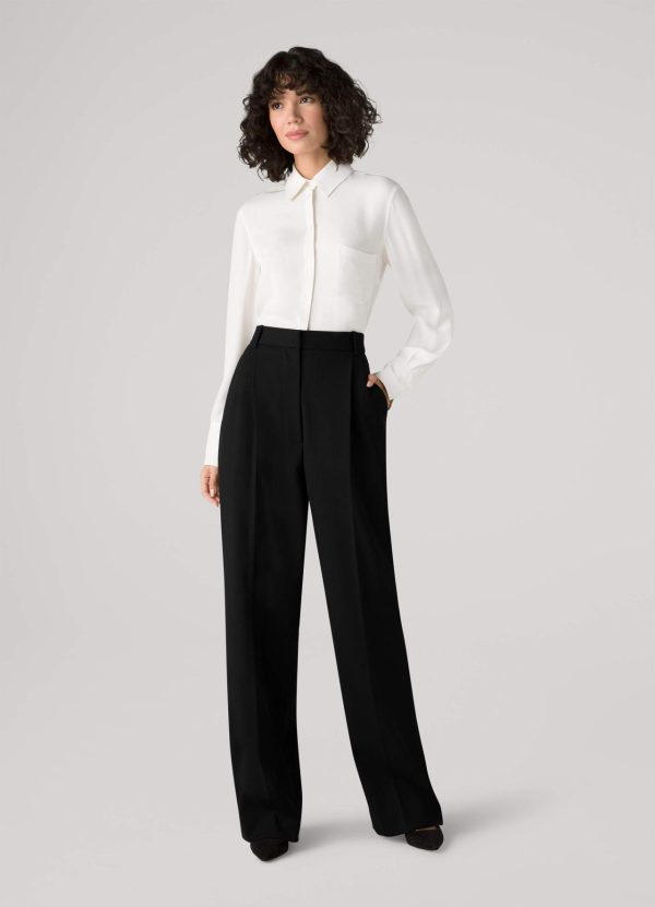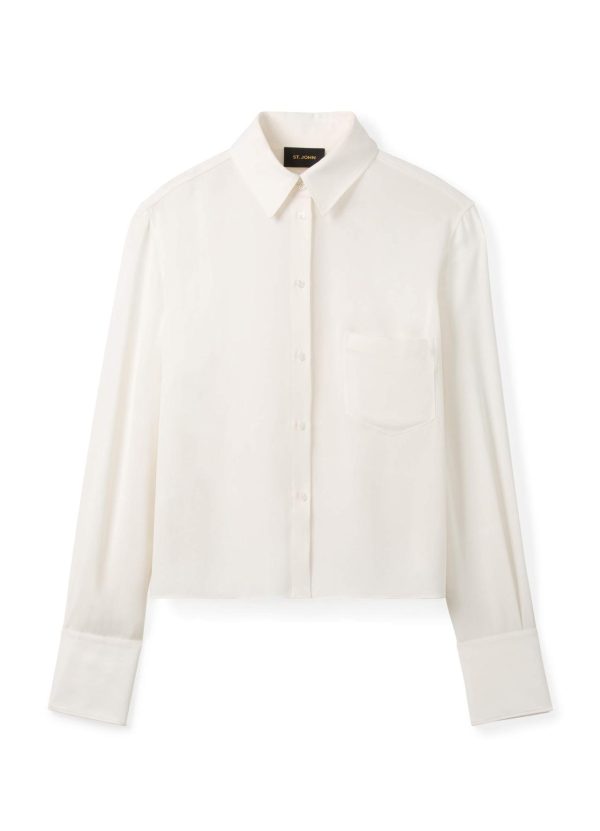 A button up pocket shirt is crafted in silk double georgette, an elegant match for most any pant or skirt.