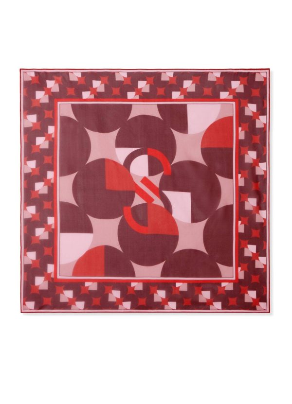 SJ Logo Bold Geo Silk Twill Scarf Rouge Multi | Women St. John Scarves