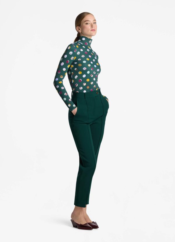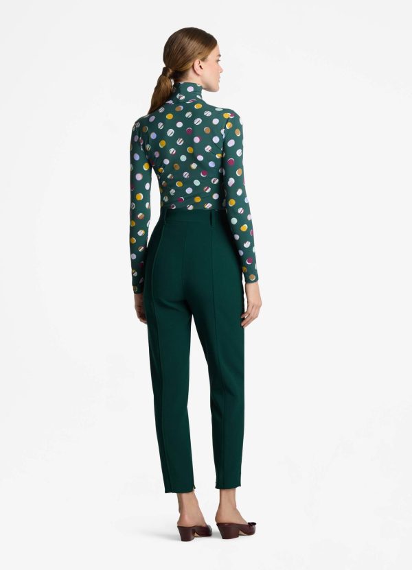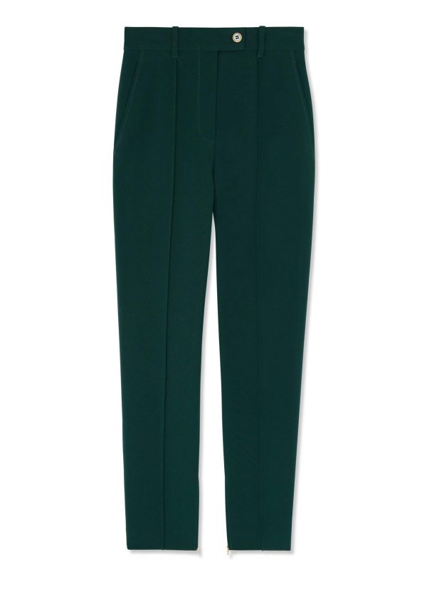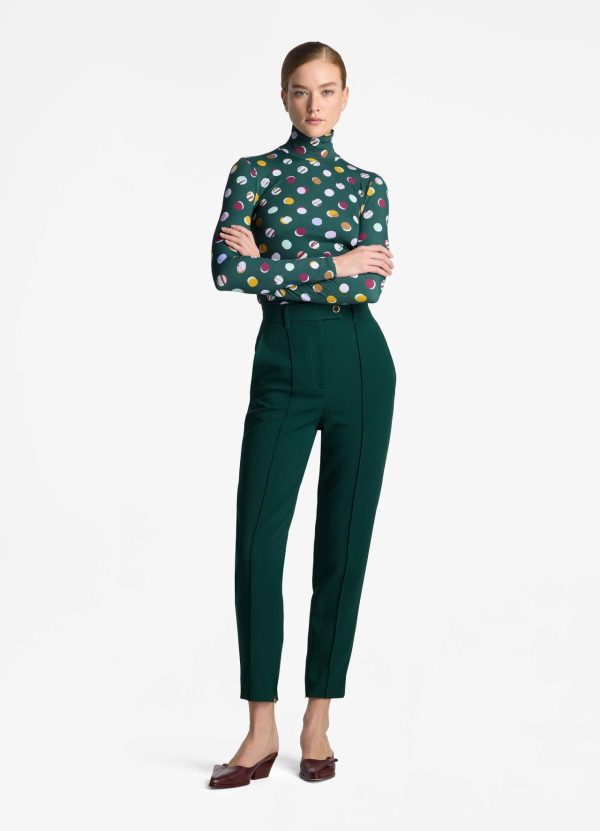 Stretch cady fabric brings structured comfort to this smart high waist pant, complete with flattering front pintuck details, stylish ankle zippers, and pockets.