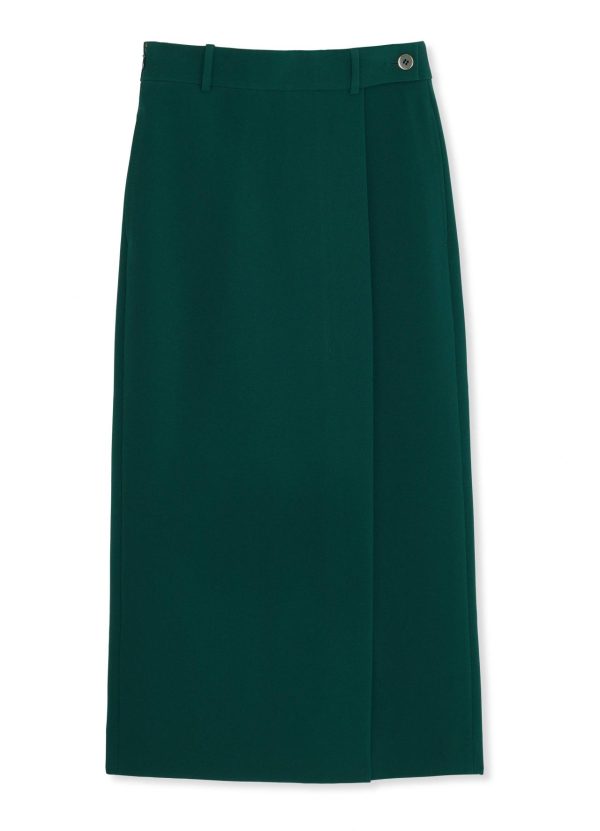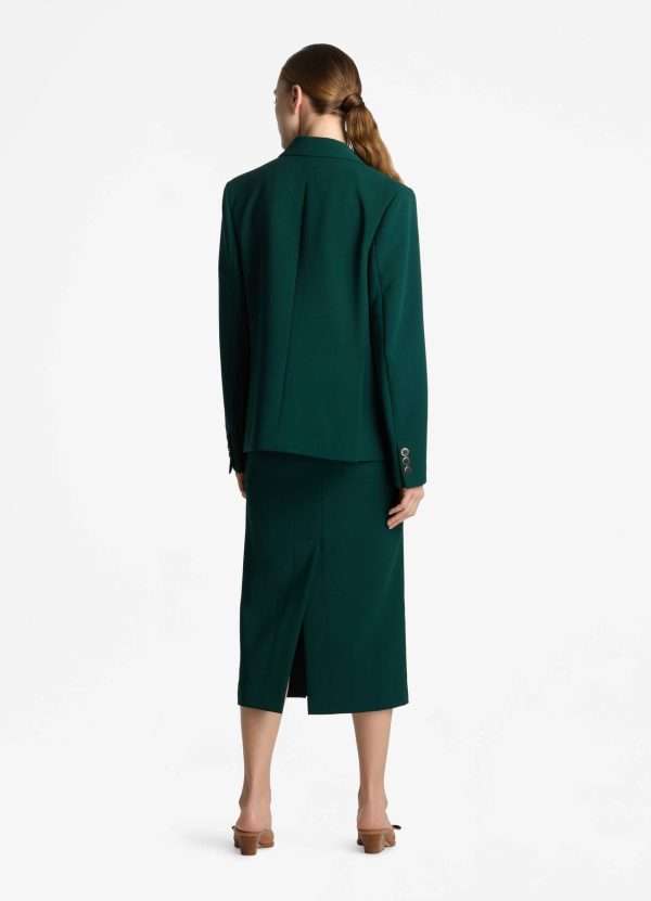 A suiting skirt with flair, this stretch cady style features a long vent and pockets.