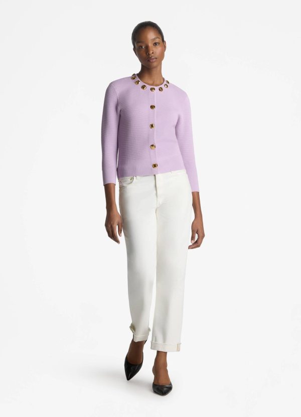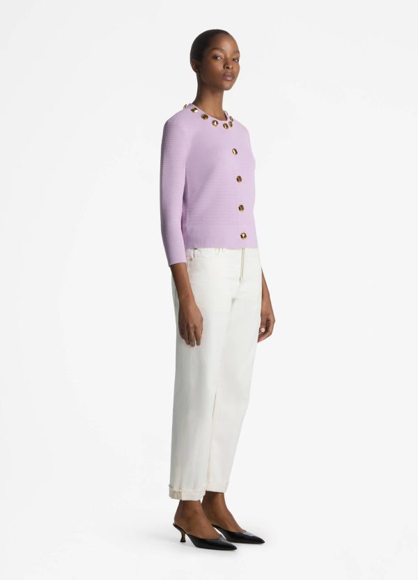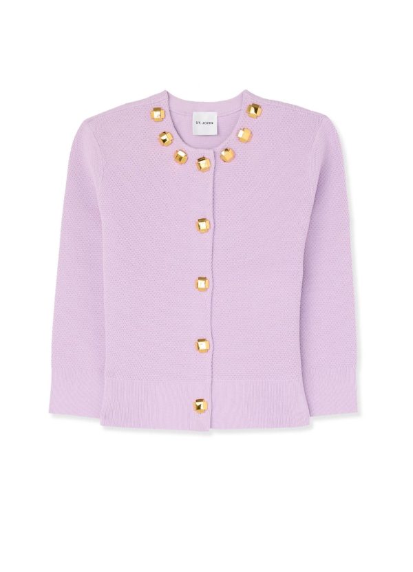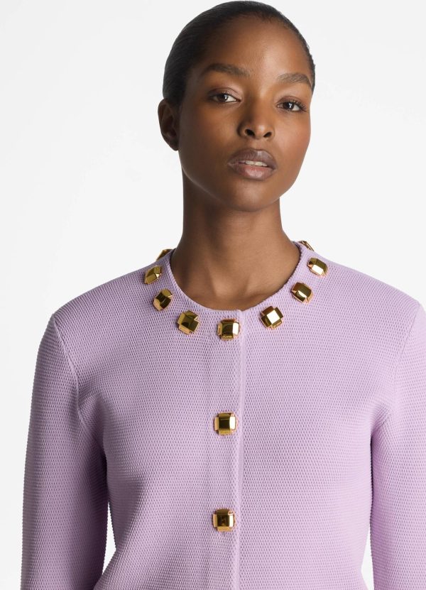 Studded Pique Knit Cardigan Amethyst | Women St. John Sweaters