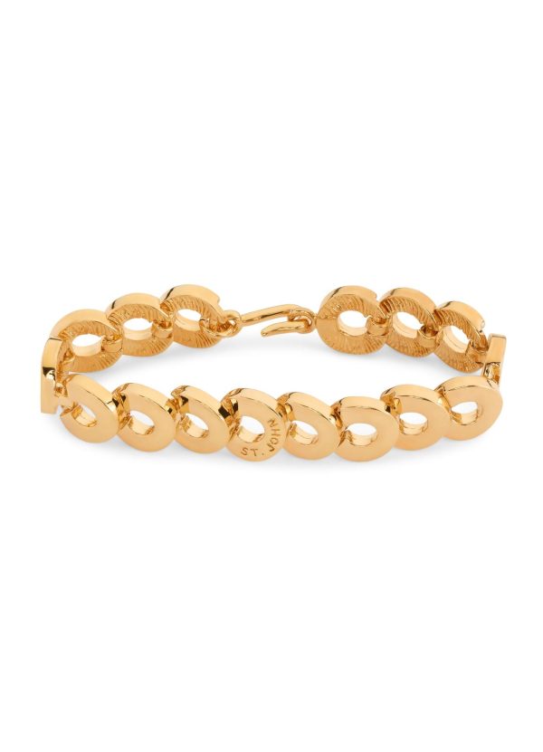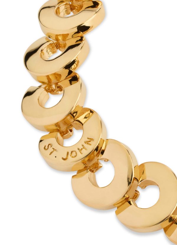The open circles of this washer coin bracelet show peeks of skin through the glistening gold of this just-chunky-enough bracelet.